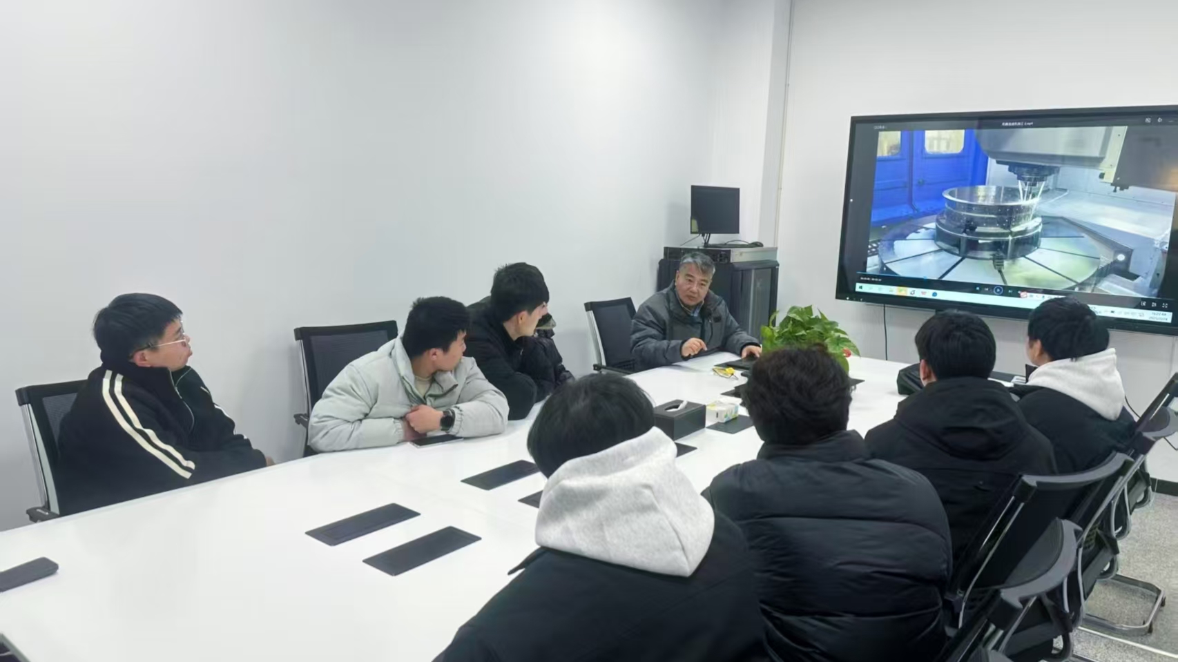 在參觀環(huán)節(jié),師生們被車間內(nèi)數(shù)控機(jī)床和加工中心的轟鳴聲和高效運(yùn)轉(zhuǎn)所吸引,親眼見證了企業(yè)在航空航天、汽車零部件及電子配件等領(lǐng)域的精密制造實(shí)力。夏向東詳細(xì)介紹了企業(yè)引進(jìn)先進(jìn)設(shè)備、嚴(yán)格遵循工藝流程并構(gòu)建完善質(zhì)量管理體系的情況,并強(qiáng)調(diào)高技能人才對(duì)企業(yè)持續(xù)創(chuàng)新的關(guān)鍵作用。學(xué)生們抓住機(jī)會(huì),圍繞設(shè)備操作、編程技巧和工藝控制等問題,積極提問,并與現(xiàn)場(chǎng)工程師展開熱烈的互動(dòng)交流,對(duì)專業(yè)理論與實(shí)際應(yīng)用之間的緊密聯(lián)系有了更深刻的理解。