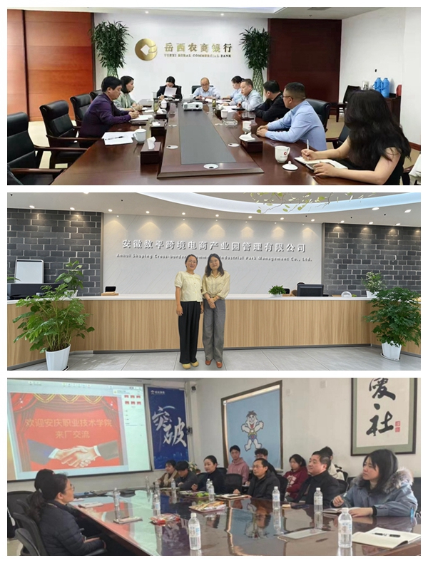 為做好2025級人才培養(yǎng)方案修訂工作,4月22日至5月10日期間,安慶職業(yè)技術學院現(xiàn)代商務學院組織專業(yè)負責人帶領團隊教師赴安徽岳西農(nóng)村商業(yè)銀行股份有限公司、安徽天鵝科技實業(yè)(集團)有限公司、國汽大有時空科技(安慶)有限公司、安徽環(huán)豐物流有限公司、安慶旺旺食品有限公司、安徽省一品鮮菇業(yè)有限公司、安徽數(shù)平跨境電商產(chǎn)業(yè)園管理有限公司、安徽云霽電子商務有限公司等多家省內(nèi)企業(yè)開展調(diào)研論證。