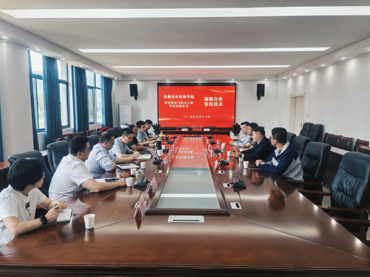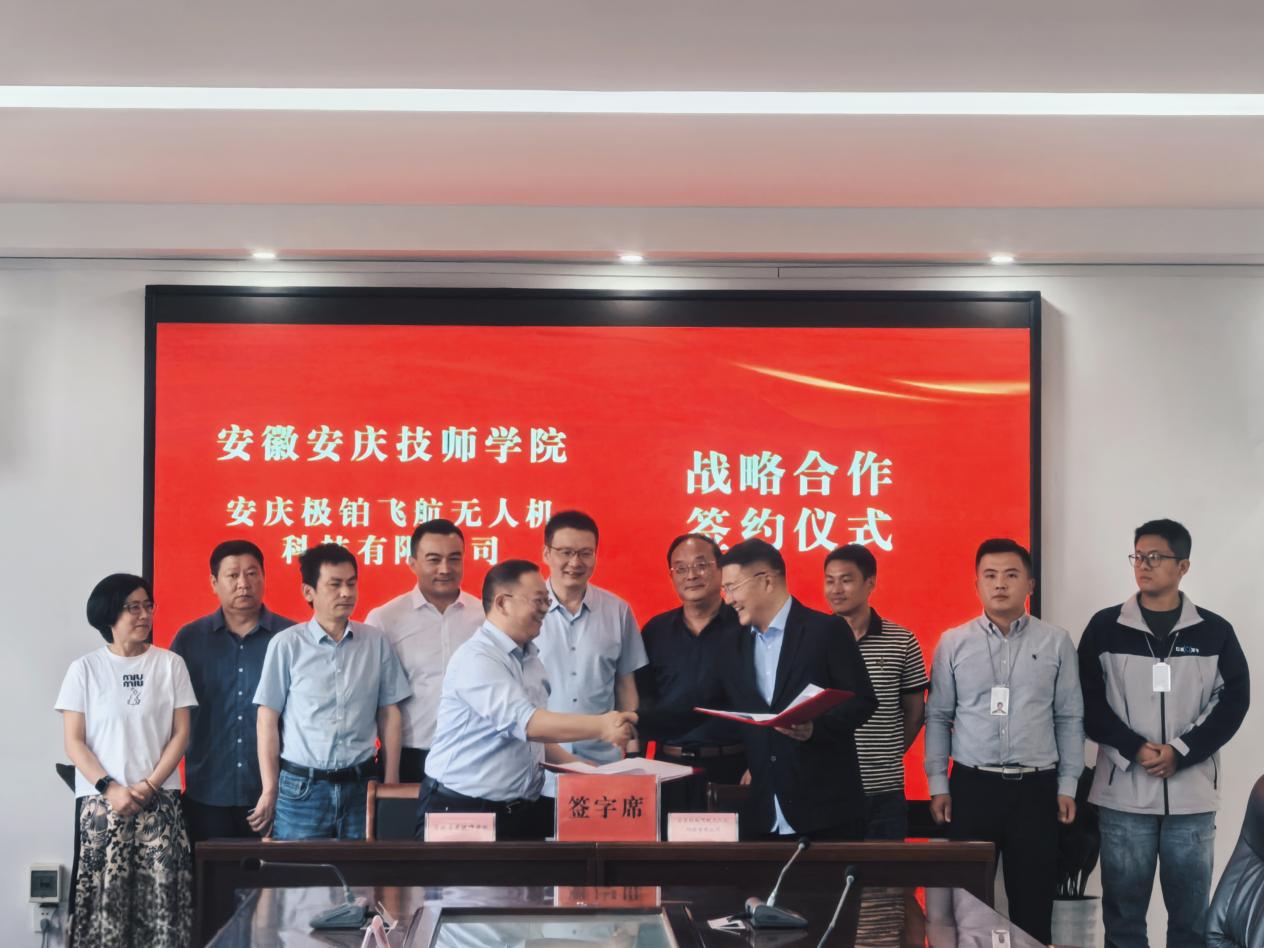 為推動無人機技術(shù)領(lǐng)域高素質(zhì)人才培養(yǎng),5月13日,安慶技師學(xué)院與安慶極鉑飛航無人機科技有限公司,正式簽署戰(zhàn)略合作協(xié)議,雙方將圍繞產(chǎn)教融合、人才共育等方向開展深度合作,共同探索無人機技術(shù)應(yīng)用領(lǐng)域的創(chuàng)新發(fā)展路徑。學(xué)院黨委副書記、院長徐英武攜院領(lǐng)導(dǎo)班子成員及相關(guān)部門負責(zé)人,安慶極鉑飛航無人機科技有限公司總經(jīng)理胡應(yīng)日攜相關(guān)部門負責(zé)人,出席此次簽約儀式。