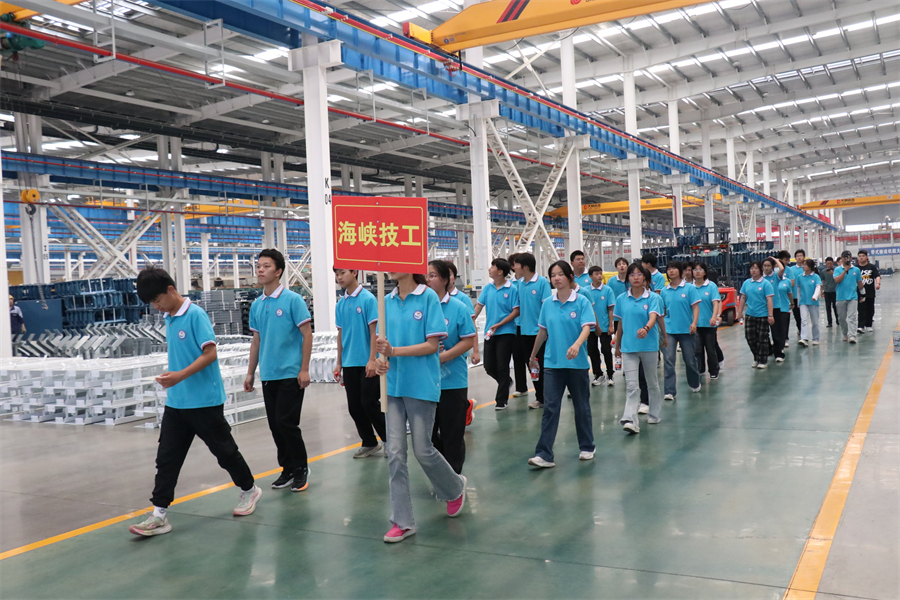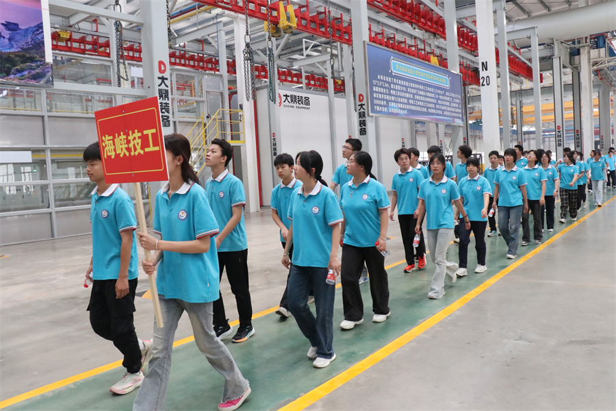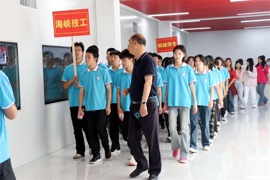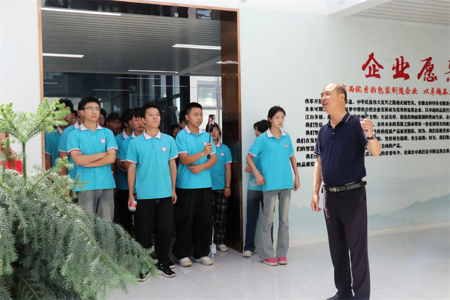 隨后高校、職校學生赴金科印務、大鼎智能裝備等重點工業(yè)企業(yè)實地觀摩?;顒又?,學生們深入企業(yè)生產(chǎn)一線,觀摩智能化生產(chǎn)線,聆聽技術人員細致講解,了解產(chǎn)品制造流程與技術創(chuàng)新,感受企業(yè)文化與生機。家鄉(xiāng)桐城發(fā)展的蓬勃生機和火熱場景給同學們留下了深刻印象。