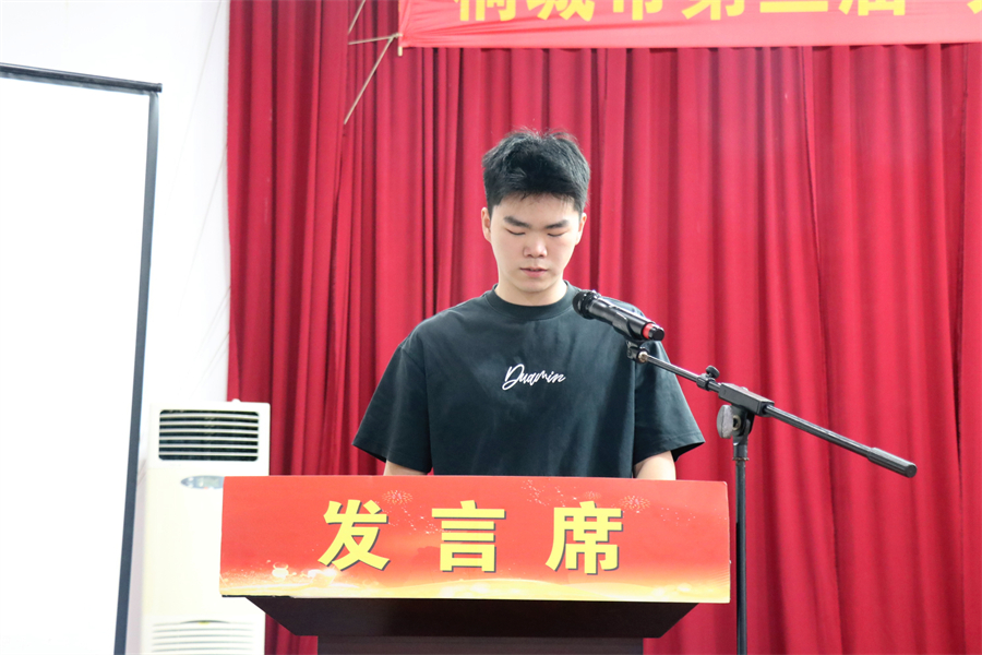 桐城海峽高級技工學校優(yōu)秀畢業(yè)生代表,2023屆智能制造專業(yè)高級工班學生,現(xiàn)金科印務公司鍍鋁車間機長柯方鈺,上臺跟同學們分享了他的就業(yè)經(jīng)歷與感悟,他倡議同學們以所學之長投身家鄉(xiāng)建設,在新時代桐城發(fā)展的浪潮中,書寫屬于自己的奮斗篇章!