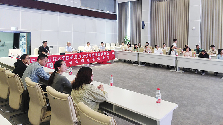 10月12日上午,安慶職業(yè)技術(shù)學(xué)院信息技術(shù)學(xué)院黨總支書記、院長疏國會率全體教師黨員前往安慶電信開展黨建聯(lián)建交流活動(dòng)。安慶電信政企事業(yè)部主任石楊華、教育部主任丁毛毛等接待了團(tuán)隊(duì)一行。