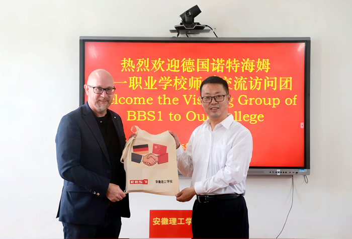 9月26日,德國諾特海姆第一職業(yè)學(xué)校(BBS1)師生代表團(tuán)一行訪問安徽理工學(xué)校,開展交流活動。校黨委副書記、校長李海軍,校黨委委員、紀(jì)委書記張平,督導(dǎo)員郭世杰熱情接待了訪問團(tuán),相關(guān)職能部門負(fù)責(zé)人及學(xué)生代表共同參與交流活動。