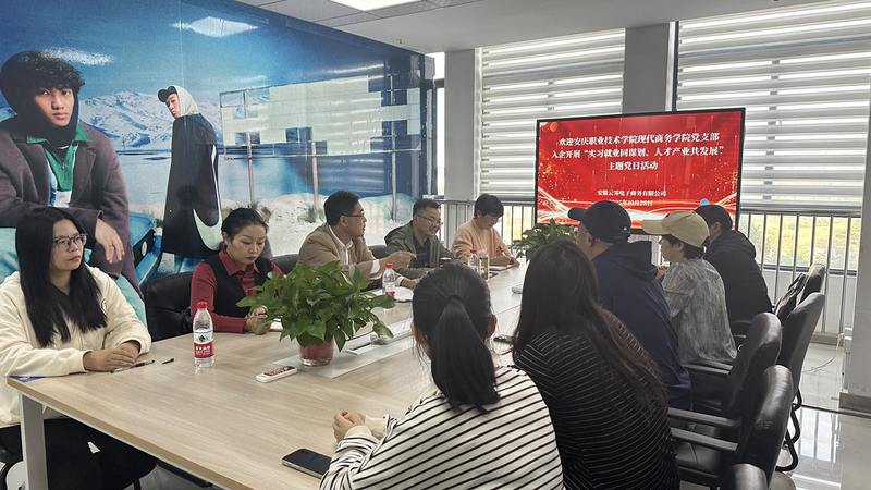 10月28日,安慶職業(yè)技術(shù)學(xué)院現(xiàn)代商務(wù)學(xué)院黨總支組織部分黨員教師,前往安徽云霽電子商務(wù)有限公司,開展“實(shí)習(xí)就業(yè)同謀劃,人才產(chǎn)業(yè)共發(fā)展”主題黨日活動(dòng)。
